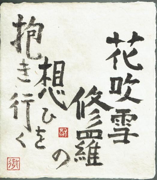 星野徹色紙 「花吹雪修羅の想ひを抱き行く」毛筆太字