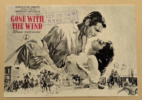 二つ折りのチラシ1点です。 1960年代ごろのリバイバル上映時のものと思われます。 監督:ビクター・フレミング 出演:ヴィヴィアン・リー クラーク・ゲーブル 他 ※状態B(経年傷み・ヤケ・汚れ。フチシミ・少傷み有り。)