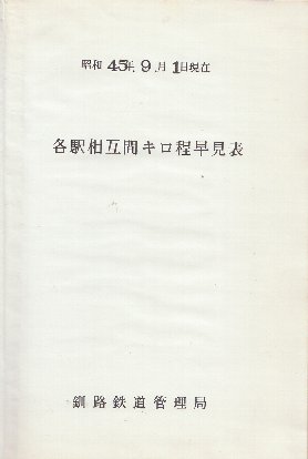 釧路鉄道管理局 各駅相互間キロ程早見表 昭和45年版