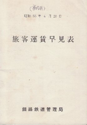 釧路鉄道管理局 旅客運賃早見表 昭和55年版 案内用