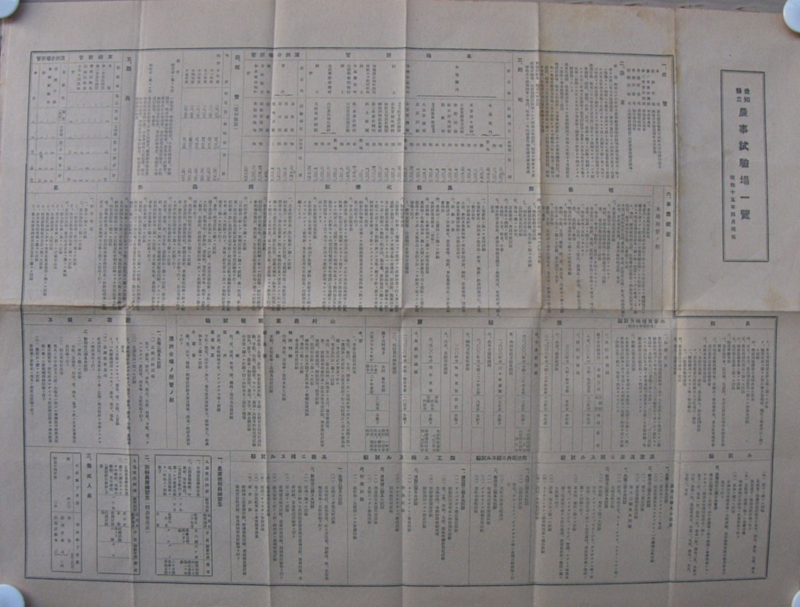 愛知県立農事試験場一覧 昭和15年4月現在