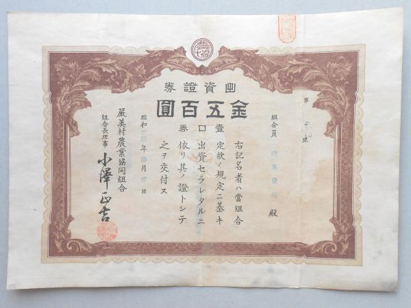 〈出資証券〉巌美村農業協同組合