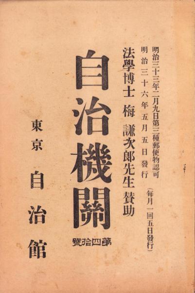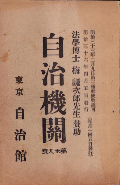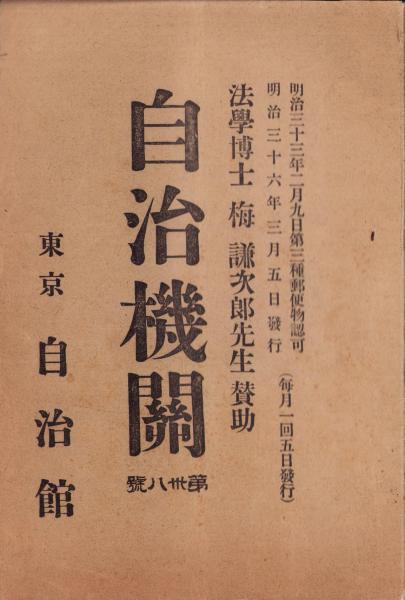 梅謙次郎・賛助、自治館(東京市)、明治36年、1冊