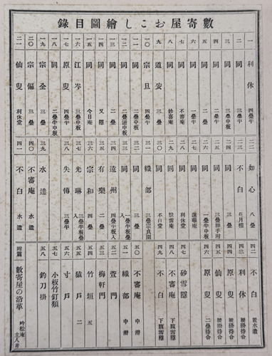 数寄屋おこし絵図 利休(不審庵)/宗旦(今日庵)/江岑(三畳中板)/不白(蓮華庵)/織部(中潜)/他 (附:数寄屋の沿革共58点)
