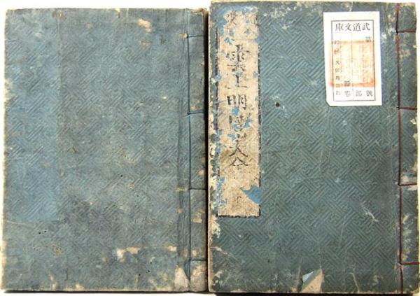• 解説 【上巻~元治元年改、下巻~嘉永五年春改正~京都書林】版違い2冊揃い:和装本:文庫サイズ、上巻:題箋欠、余白に虫損、後見返しに付票剥がし跡、下巻:題箋剥がれ、表紙に蔵書票、中頃約20丁に大虫損・他に微小虫損有り、扉に蔵印有 ◎国内送料無料