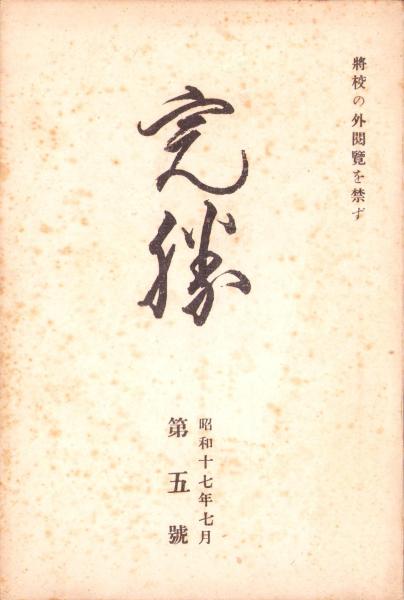 A5判、109頁、4枚小口側少いたみ(読むに支障なし P37~44)、外回りに経年しみ、〈将校の外閲覧を禁ず〉