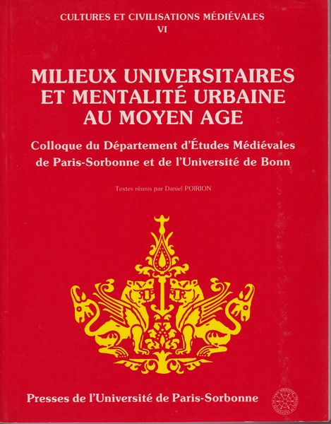 Milieux universitaires et mentalité urbaine au Moyen Age : colloque du Département d'études médiévales de Paris-Sorbonne et de l'Université de Bonn <Cultures et civilisations médiévales 6>