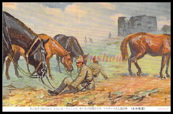 【絵葉書】アート【馬事報告四月七日 愛馬の日 2種2枚 袋付】戦前