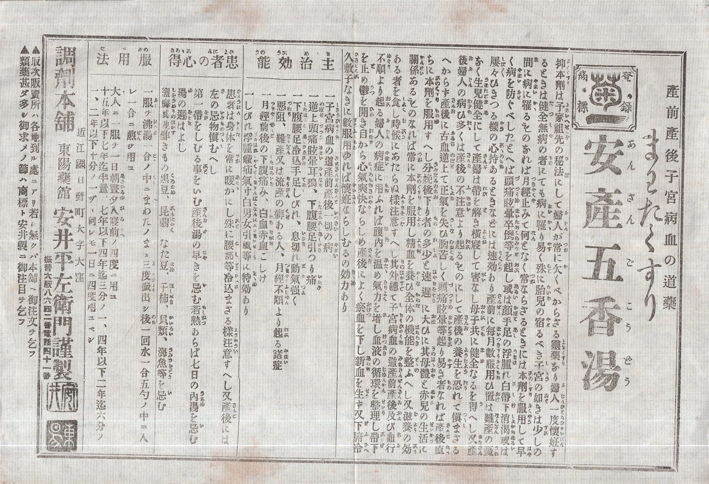 (明治期薬引札)安産五香湯(東洋葵舘・近江国日野町)