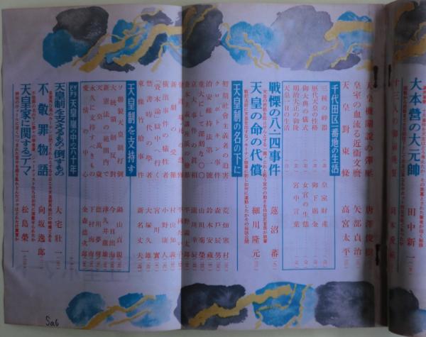 ”天皇制の名の下に”荒畑寒村・瀧川幸辰・村山知義ほか、”天皇制を支持す”今日出海・徳川夢声・下村海南ほか。その他。