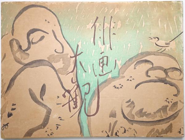 折帖 木版摺俳画35枚揃 目録(目次)入 大正期に分けて刊行された木版画を合本したものと思われる 山口八九子(表紙も)、近藤浩一路、小川千甕、津田青楓、柴田晩葉、大須賀乙字、石井柏亭、松瀬青々他 (部分的に経年ヤケと経年シミ、後ろ表紙を厚紙にて補修、折り目1ヵ所補修、表紙に経年ヤケと辺スレ) *他の俳画の画像有