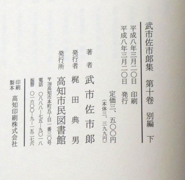 武市佐市郎集 第10巻・別編下巻