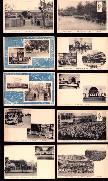 〈奉安殿〉〈参宮団/神社参拝〉〈避難 少年消防隊出動/隊旗〉〈雛祭 観月唱歌会〉〈行動内部/理科教室外部〉〈運動会/体育練磨ノ賜〉〈緊急手当/担架操法〉〈町会/校旗/少年ラッパ手〉〈校舎正面及桜井校長〉〈敬老/偉人祭/女子補習学校〉 、平塚少年赤十字団(神奈川県) 、戦前 、10枚