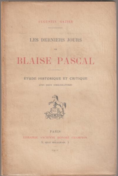 Les derniers jours de Blaise Pascal : étude historique et critique