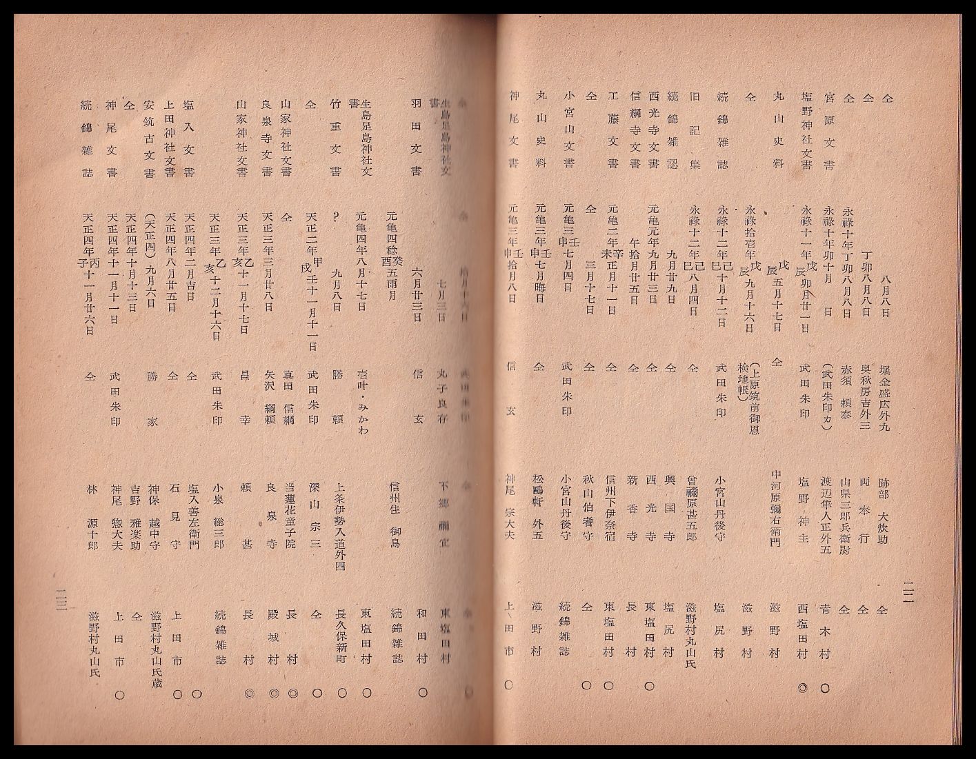 信濃史料集録古文書 自六巻至十一巻 稿本郡別散在目録 東北信之部/稿本県外散在目録 (小冊子)