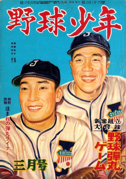 〈巻頭写真 別所毅彦〉〈巻頭口絵 霜野二一彦・画「杉下茂」「別当薫」〉〈大和球士「ほまれの弾丸ライナー -川上哲治-」10頁〉〈藤本英雄・解説/フォーム「投手は打者をどう見わけるか -各選手模範コーチ-」モノクロ4頁〉〈志村正順「志村アナウンサー 放送種あかし」9頁〉〈五十公野清一「米川泰夫投手物語」6頁〉、大井広介、中沢不二雄、山岡荘八、北條誠、西川光、島田一男、伊沢龍雄、島村進、田中正雄、伊藤隆夫、古沢日出夫 、芳文社 、昭和27年 、1冊
