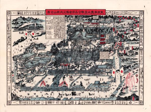 (一枚刷)大日本農水産聯合品評会場及成田山全景(千葉県)