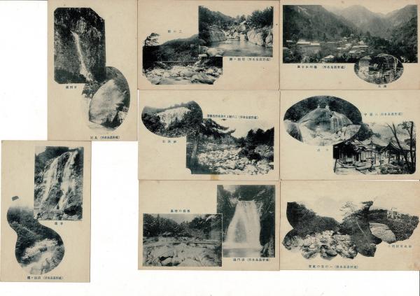 (レトロ絵葉書)菰野温泉 名勝絵葉書 絵葉書8枚と袋 袋に「菰野温泉 湯の山 遊覧記念」印 袋ヤケ・破損