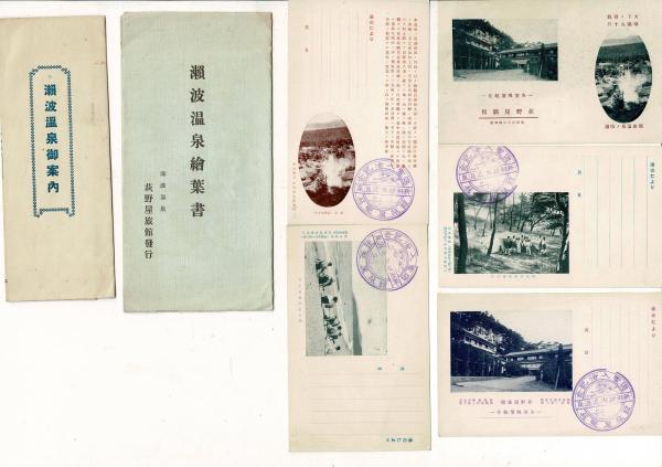 (レトロ絵葉書)「瀬波温泉絵葉書」絵葉書5枚 タトウ付き、「瀬波温泉ご案内」」リーフレット入り