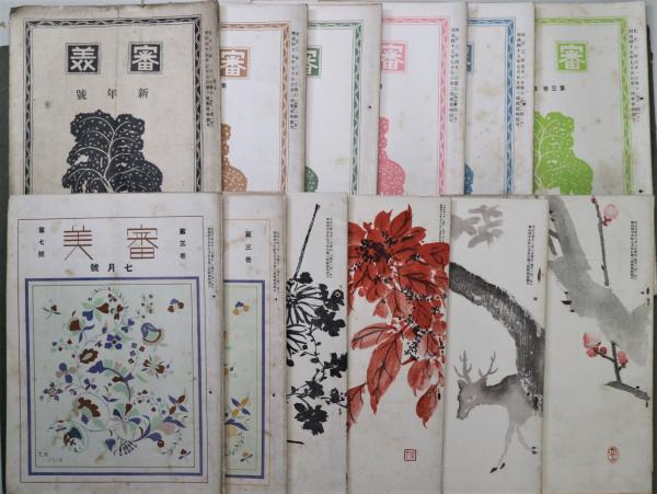 • 解説 1号:「美術界の官僚打破」樋口龍峡他 2号:「審美倶楽部創立趣旨」「科学と美術」川村多実二 3号:「日本美術論」九鬼男爵「岩佐又兵衛」(一) 4号:「争闘の生活と調和の芸術」石川宰三郎 「浮世絵又兵衛」(承前) 5号:「日本画に於ける流行の変遷」島崎柳塢 「浮世絵又兵衛」(承前) 6号:「日本画の線」池上秀畝 「山岡米華氏逝く」 7号:「大正博の擬賞」泉川鷹男 「浮世絵又兵衛」 8号:「光琳に代表されたる日本画」石川宰三郎 「足利時代以後の名画の所在」城北閑人 「絵になる避暑地とならぬ避暑地」三宅克己 9号:「欧州の大戦乱と美術」鬼怒川秋雲 10号:表紙絵「小室翆雲」 「戦争と思想及芸術」絹川秋雲 11号:表紙絵「中村不折」 「文展の洋画」木村荘吾 12号:「今秋美術界の傾向を論ず」石川宰三郎」 各冊綴じ穴