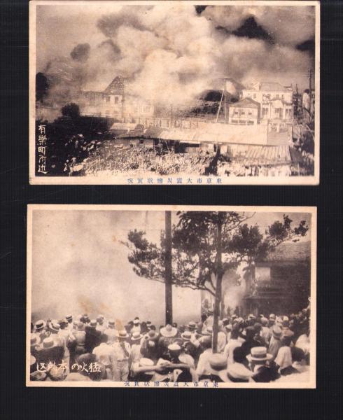 〈猛火の本所区〉〈有楽町附近〉、戦前、2枚