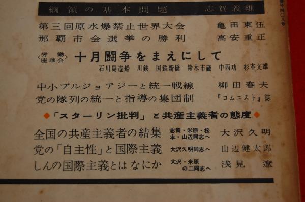 • 解説 日本共産党中央委員会理論政治誌。函、カバーのない簡易装丁の本(雑誌)です。全体的に経年によるヤケ、シミ目立ちます。表紙シミ汚れ目立ちます。巻頭付近にやや目立つ線引きあり。通読には支障ありません。販売当時定価100円。通読は可能ですが、使用感、経年感強いことからコンディション評価は「並下」といたしました。