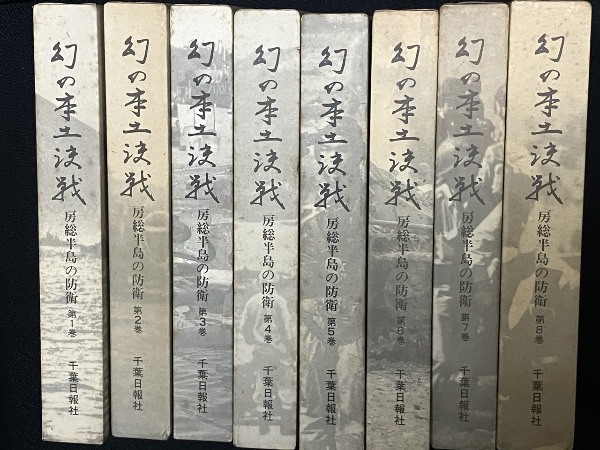 函(ヤケ茶変色)。小口少ヤケ。見返しヤケあり --- 発刊のことば 千葉日報社は既に「福井部隊の血戦記」、「レイテの雨―佐倉連隊の最後」を長期連載し、いずれも単行本にまとめ、関係者をはじめ各界から好評を博しました。今回の「幻の本土決戦―房総半島の防衛」は、一連の草稿を飾る“集大成”の過程と言えましょう。 しかし、その内容は規模、範囲、期間などあらゆる面で前二回と趣を異にしています。福井部隊(歩兵第百五十七連隊)は日中戦争の初期、中支の戦場で活躍。佐倉連隊(歩兵第五十七連隊)は太平洋戦争末期、レイテ島で米軍と死闘を演じました。いずれも郷土部隊の歩みを描いたものです。 「幻の本土決戦」は、連載が始まって間もなく、作戦の変更を余儀なくされたようです。陸海空の関係者から資料が予想以上に寄せられ、戦域が広範囲に及んだため、大作戦のほとんどを取り上げねばならぬ羽目に陥りました。さながら「太平洋戦争全史」の観を呈するに至ったのです。 私事にわたって恐縮ですが、私の実兄・詳三(歩兵第五十七連隊の中尉)は昭和十二年三月二十三日、満州の喜雀溝付近でゲリラと交戦し、戦死を遂げました。私自身、兵役の経験は浅いが、専修大学在学中の昭和十八年の秋、日本学生航空連盟の一員として千葉郡誉田村(現千葉市)の滑空場で合宿訓練に励みました。航空予備軍だったのです。 幸いにも、「コロネット作戦」という米軍の九十九里浜上陸・関東進攻作戦の最悪事態は回避されました。“幻”に終わったから良かったものの、万一この作戦が実現していたら、房総半島、千葉県民はどうなっていたでしょうか。つくづく思います。 あれから四十余年、日本は驚異的な経済発展を遂げ、空前の繁栄を享受しています。しかし、その陰に幾多の尊い犠牲者があり、礎となっていることを忘れてはなりません。本書がいささかでも過去の歴史の発掘、平和への希求の一助になれば幸いです。 平成元年十二月十六日 千葉日報社代表取締役社長 土屋秀雄
