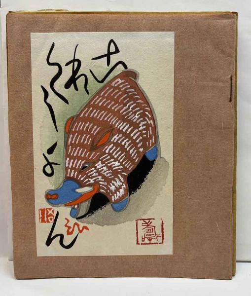 限定500部 「小絵馬」山内金三郎 「思い出のこけし作者」田中純一郎・古作こけし誌上入札会他 こけし描彩模様千代紙(下沢木鉢郎)一部貼込付 木版画題箋貼込表紙 (赤鉛筆記入有)