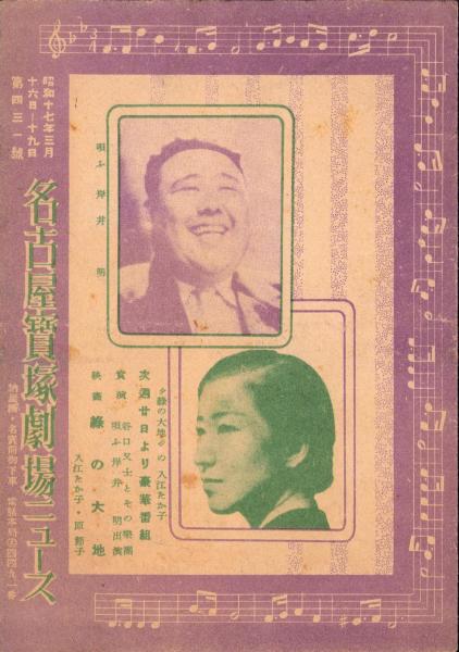 (映画チラシ)名古屋宝塚劇場ニュース 431号 -昭和17年3月- 表紙モデル・岸井明と入江たか子(名古屋市)