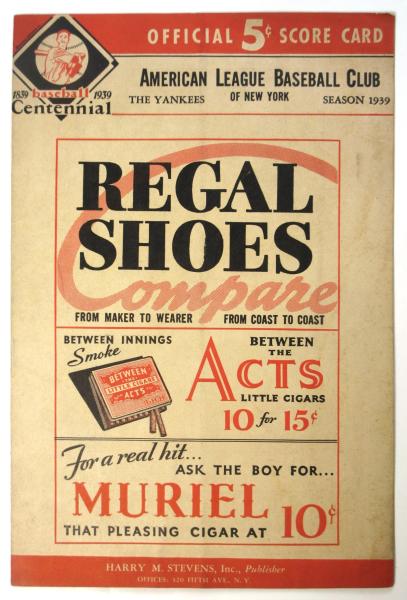 (英)ニューヨーク・ヤンキース対シカゴ・ホワイトソックス スコア表 1939
