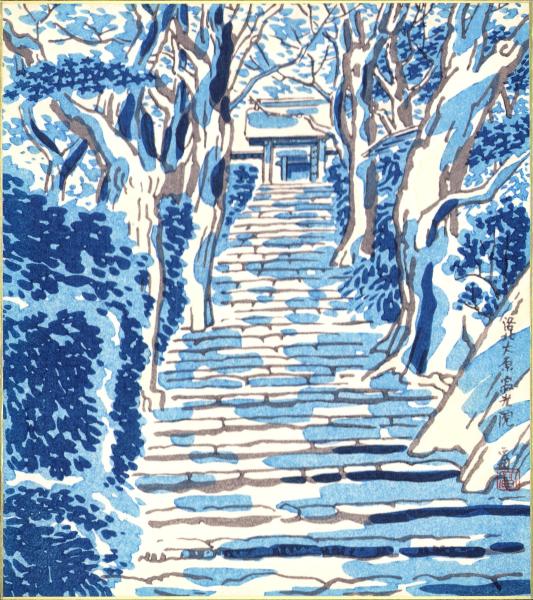 (木版画色紙)徳力富吉郎「洛北大原 寂光院」