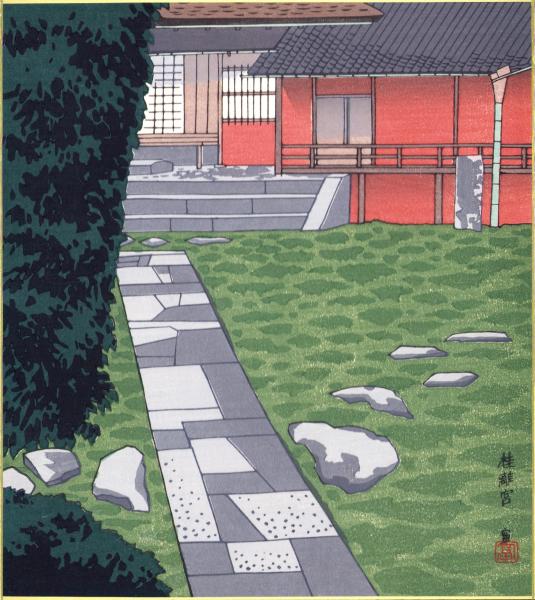 (木版画色紙)徳力富吉郎「裏千家 又隠庭前」