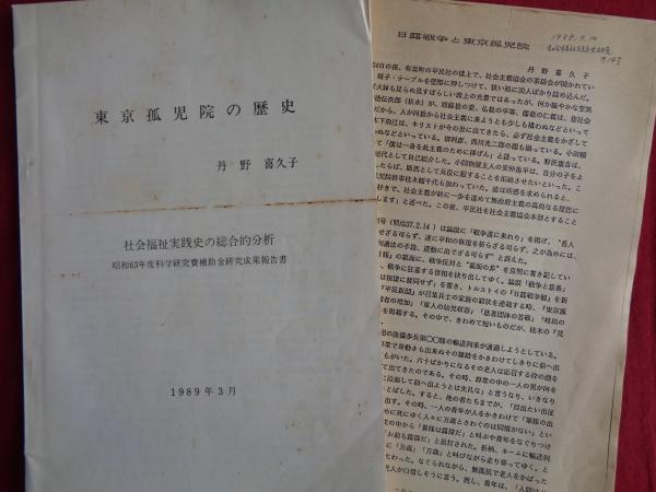 東京孤児院の歴史 社会福祉実践史の総合的分析(丹野喜久子、1989年)、日露戦争と東京孤児院ほかー社会福祉実践史研究第14号抜刷(丹野喜久子、1988年)2冊