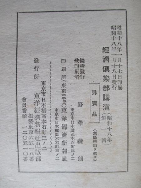 經濟倶楽部講演 昭和十八年一月十八日