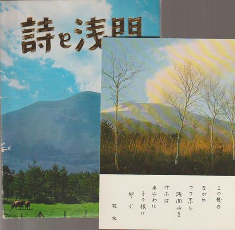浅間山を含んだ写真と詩。ポストカード8枚。 ケースにイタミあり。カードヤケ、シミ少々あり。