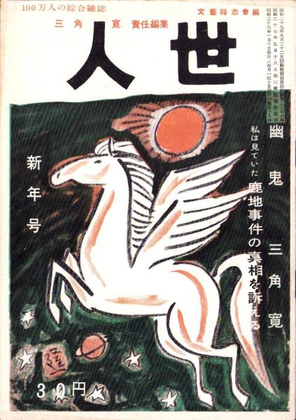 三角寛責任編集、〈三角寛「幽鬼(1)」8頁〉〈湯澤令子「アメリカ大統領に混血児の母は訴える -混血児認知訴訟事件の原告-」26頁〉〈落合貮吉「ルポルタージュ 白衣は生きている -傷病兵の生活記録-」本文11頁+モノクロ4頁〉、三角寛、中俣富三郎、横山隆一、立花良夫、神近市子、西川辰美、菊畑晴見 、文藝同志会人世社 、昭和28年 、1冊
