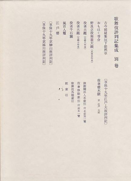 歌舞伎評判記集成 第1期(万治3年-享保年間)