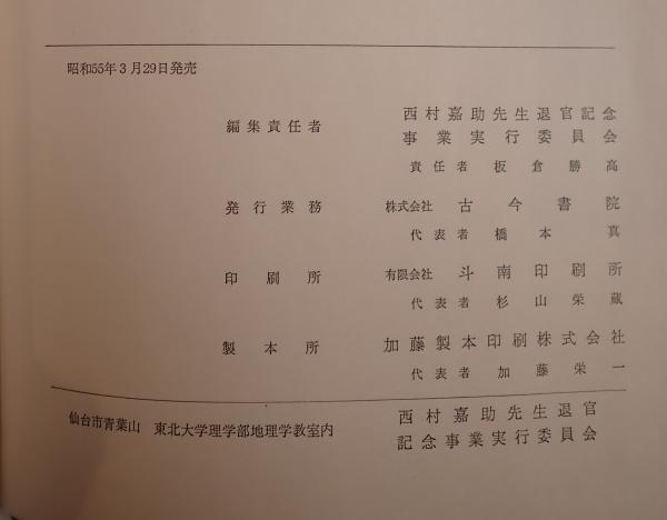 • 解説 書名:西村嘉助先生退官記念地理学論文集