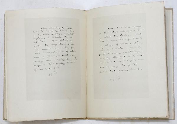 • 解説 北星堂 限定350部 (No.18) 小泉一雄 署名 函(ヤケ) ベージュ厚紙装 矢野峰人(禾積)旧蔵(K.Yanoのサイン有) This is issued by the Hokuseido Press 350 copies have been printed on water-marked Japanese vellum signed by the editor. This is no.18. (4),9,(7)pp. Beige paper covered thick boards with silver glitter,gilt lettering to front board and spine. With an original slip case. A facsimile of the original manuscript,with postscript by Kazuo Koizumi. From the library of Hojin (Kazumi) Yano with ink ownership signature (K.Yano) to front flyleaf. e.ps.somewhat foxing. A small bookshop label pasted on front e.p. Slip case sunned and spotted. 27.8x21.8cm.