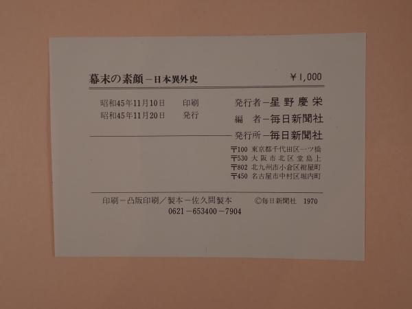 • 解説 書名:幕末の素顔―日本異外史 (1970年) 永 六輔; 毎日新聞社
