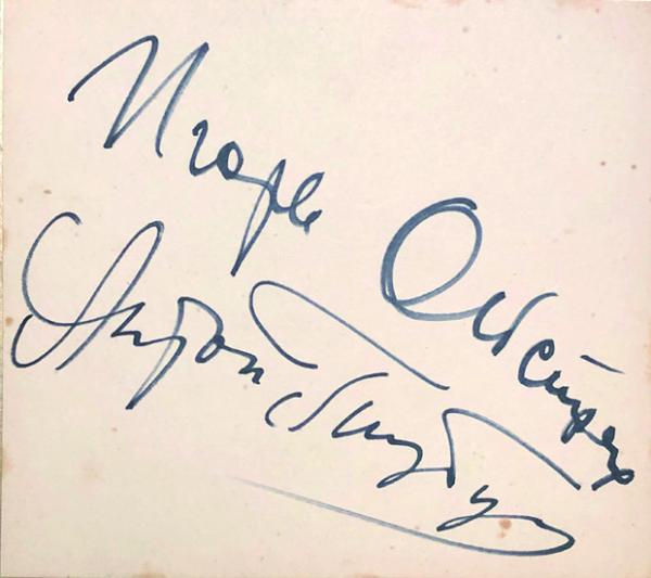 イーゴリ・オイストラフ色紙  Igor Davidovich Oistrakh