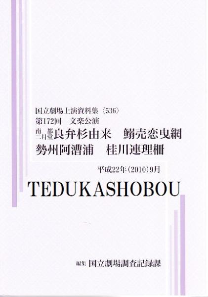 良弁杉由来 鰯売恋曳網 勢州阿漕浦 桂川連理柵 第172回文楽公演 国立劇場上演資料集536