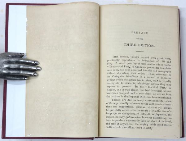 • 解説 Third edition. 第3版 明治三十一年 第3版 改装本 全体的にヤケ タイトルページからp.59に少々虫喰あり 19x13cm. ix,570pp. Rebound. All pages foxing. Title page-p.59 partly wormed.