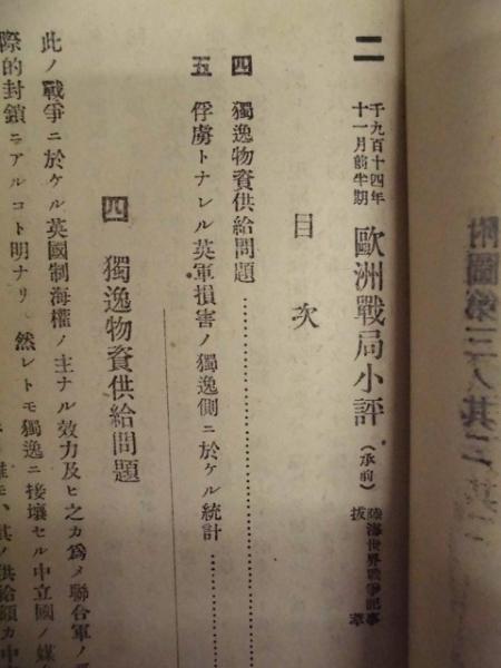 • 著者 「目次」より:・列強戦乱情報 第18 ・1914年11月前半期欧州戦局小評 ・1914年10月及ヒ11月独、墺軍ノ波蘭ニ於ケル新作戦 ・独軍ノ損害ニ対スル統計的研究 ・欧州交戦国兵力ノ比較 ・雑録