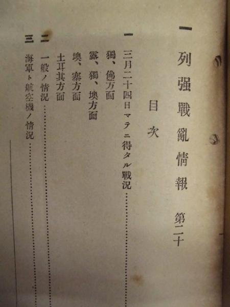 • 著者 「目次」より:・列強戦乱情報 第20 ・露国陸軍ノ沿革ト現戦役前ノ状態 ・仏国陸軍ノ沿革 ・戦争ト財政窮乏 ・雑録