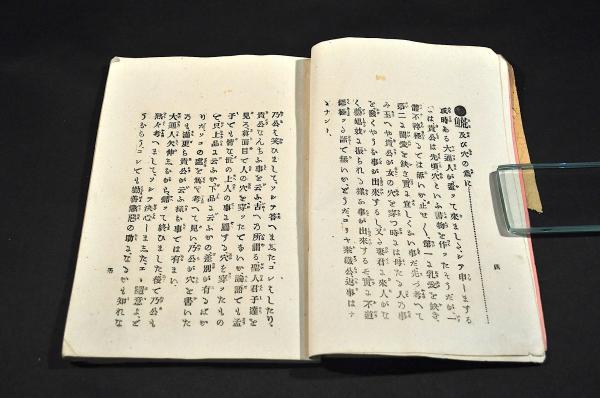 御尊家樣デ御用濟ニナリマシタ古本、雜誌ヲ弊店ヘ御賣リ下サイマスレバ夫レガ再ビ世ニ出テ役立チマス何卒御不用ノ書籍、雜誌ガ有リマシタラ何種ヲ問ワズ一册デモ結構デス弊店ヘ御拂下ゲ願ヒマス誠實ヲ旨トシテ必ズ御滿足ノ行ク樣勉強買受致シマス