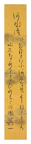 松村英一短冊「老人 うまこらのかすをかそえてまゆしろき おきなはとしをほこりかほなる 英一」