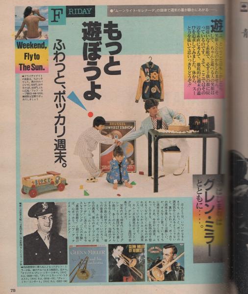 • 著者 〈週末はふわっと、ポッカリ雲になる 25頁〉〈片岡義男のアメリカノロジー 2頁〉〈もっと遊ぼうよ!ふわっとポッカリ週末 26頁〉〈原田真人のLA超特急 2頁〉〈バリは世界一の天然笑顔島です!10頁〉、山崎浩一、稲田隆紀、松木直也