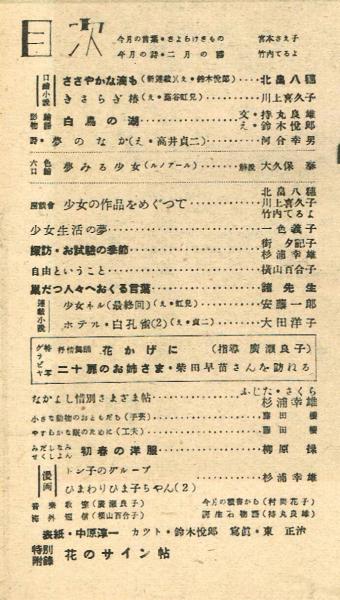 • 解説 経年変化内のヤケ。綴じ割れあり。70年以上前の出版物としては良好な状態。付録は「花のサイン帖」なし、「読者文藝」あり。