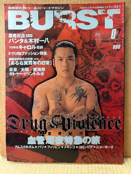 BURST バースト VOL.7 1997年2月 Drug&biolence 世界紀行 血管深夜特急の旅・ストレンジパンクス ゲバゲバ大進撃・70年代キャロル伝説 他 刺青 和彫 本邦初のタトゥー&ストリートマガジン クロスワードランド2月号増刊
